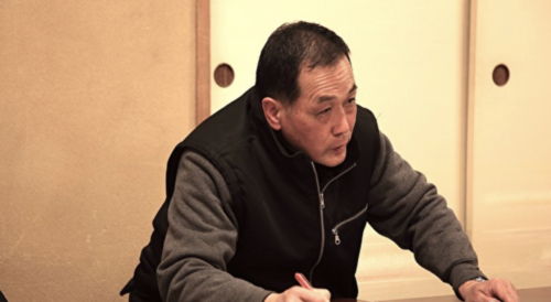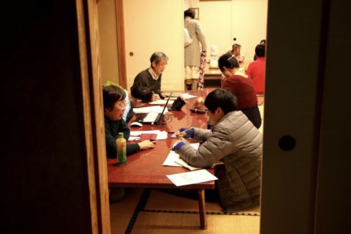 ふすまを開けると、畳の上に長机が並び、十数人が向き合っていた。10代の若者も高齢者もいる。