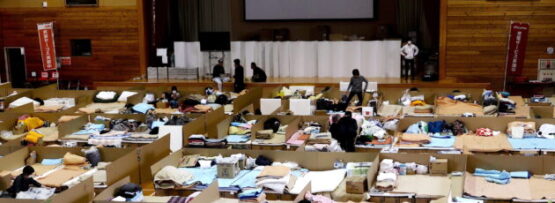 70代の男性は「最初は段ボールベッドもなく、床にざこ寝。地べたに寝てると、立ちにくいから、動かなくなる」とつらそうだった。60代の女性は「トイレ? 足りないです。女子は和…