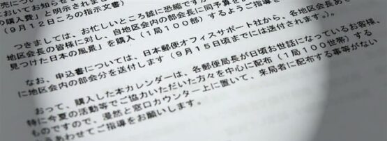 西日本新聞の「徹底調査報道・ひずむ郵政」キャンペーンの記事。自民党参院議員の後援会会員らに配布されたカレンダーが、日本郵便の社用経費で購入されていた。…
